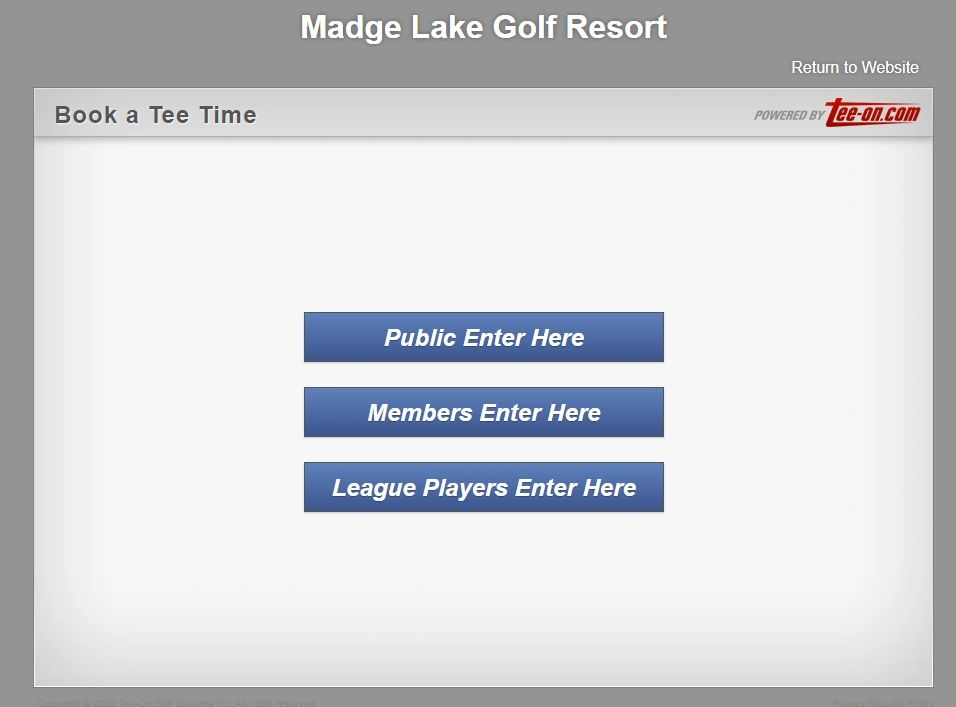 Booking a tee time will take you out of our website. Click on 'Madge Lake Golf Resort' to return.